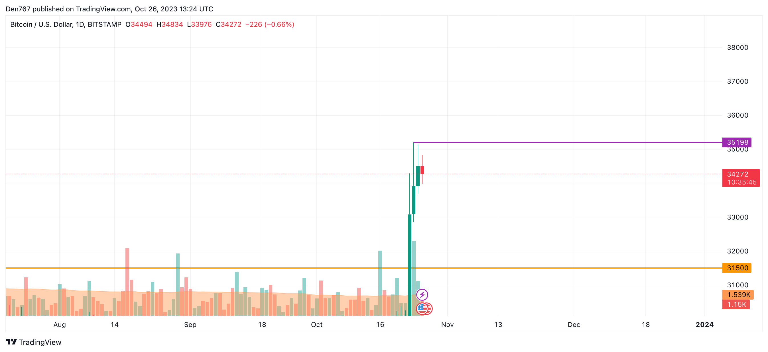 On the bigger chart, traders should pay attention to the level of $35,198. Until the price is below that mark, there is a chance to see a correction as the rate has increased significantly.