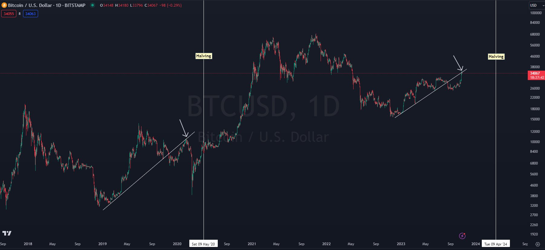 If a nuclear bomb hits the market as it did in 2020, the price will drop rapidly, but I will buy without fear. I don’t want to give the market even the slightest chance to repeat the same mistake twice. And a year from now, whether I buy from here, $20,000, or $40,000, I have a high level of confidence that all of these will be rational, high-profit purchases. 2024-2025 will be a very bright period. Take care of your money before the fun begins.