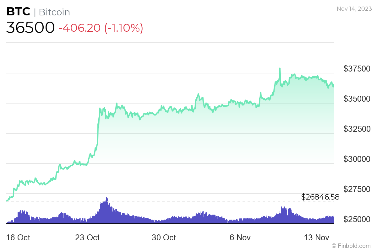 In the meantime, the price of Bitcoin currently stands at $36,500, which represents a decline of 1.10% in the last 24 hours, while the maiden crypto asset still holds onto the 5.08% gain accumulated in the last seven days and the advance of 35.96% across the past month.