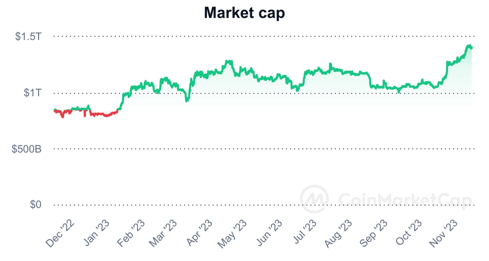 As for the market capitalization of the crypto industry, at press time, it amounted to $1.39 trillion, demonstrating a slight decline of 1.56% on the day but still advancing over 30% in the last month and as much as 65.48% across the past year, according to the data retrieved from the crypto monitoring platform CoinMarketCap on November 14.