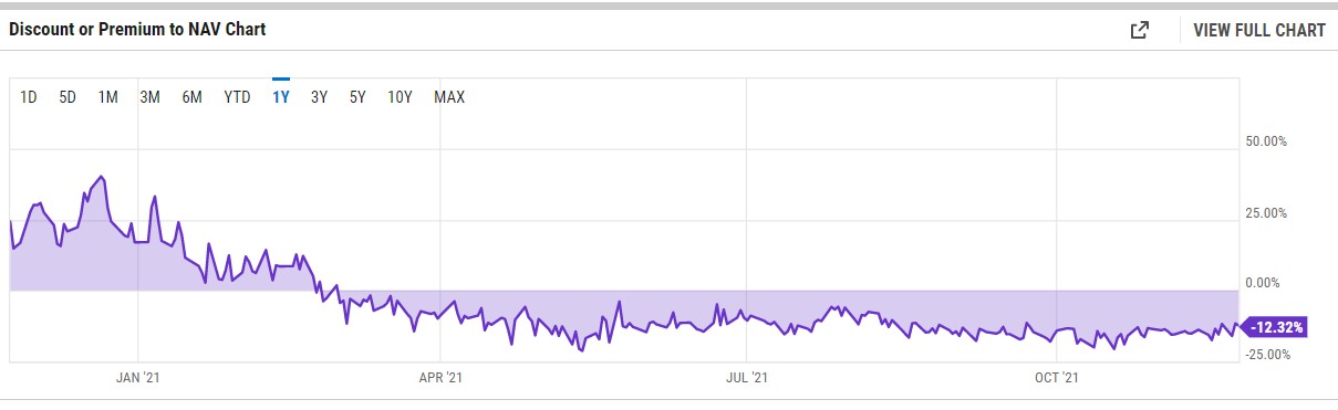 According to data from YCharts, the current GBTC discount is -12.32%.