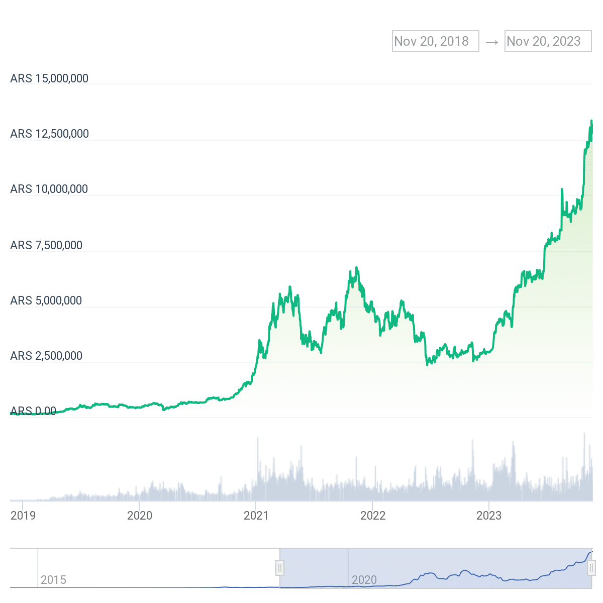 Over the past five years, BTC has seen a staggering 7,400% rise against the Argentine peso, with a 383% increase over the past year and a 26.8% rise in the last month, reflecting the growing interest and reliance on cryptocurrencies in the face of economic instability.