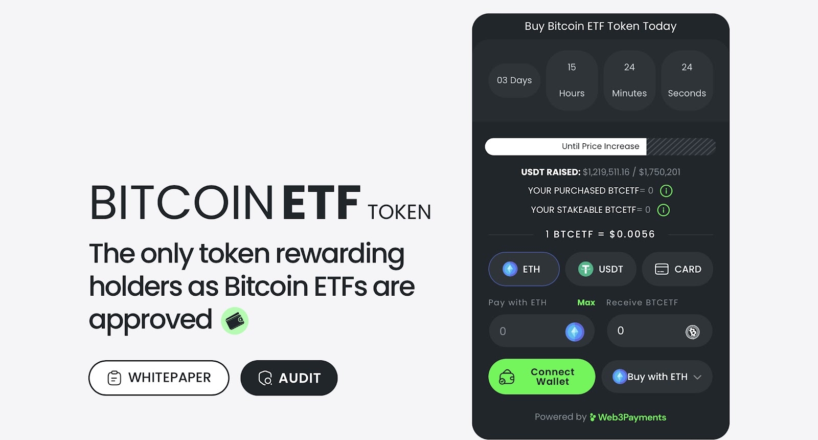 The ongoing ETF buzz is not helping the Bitcoin price only – the new Bitcoin ETF Token ($BTCETF) is also gaining significant traction, having already raised over $1.2 million in its ICO in just two weeks.