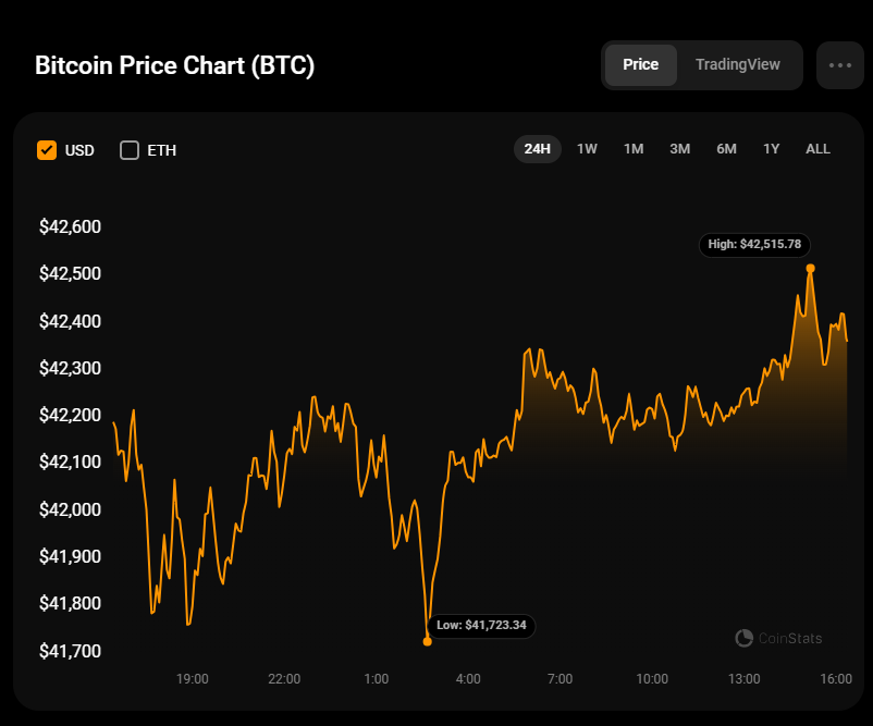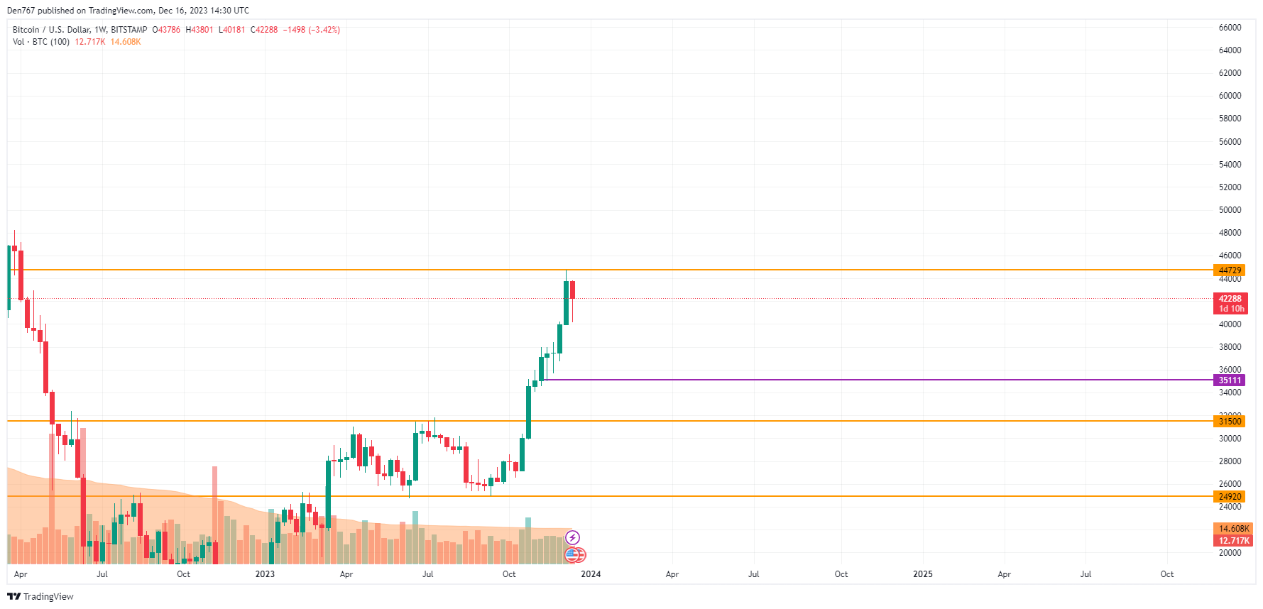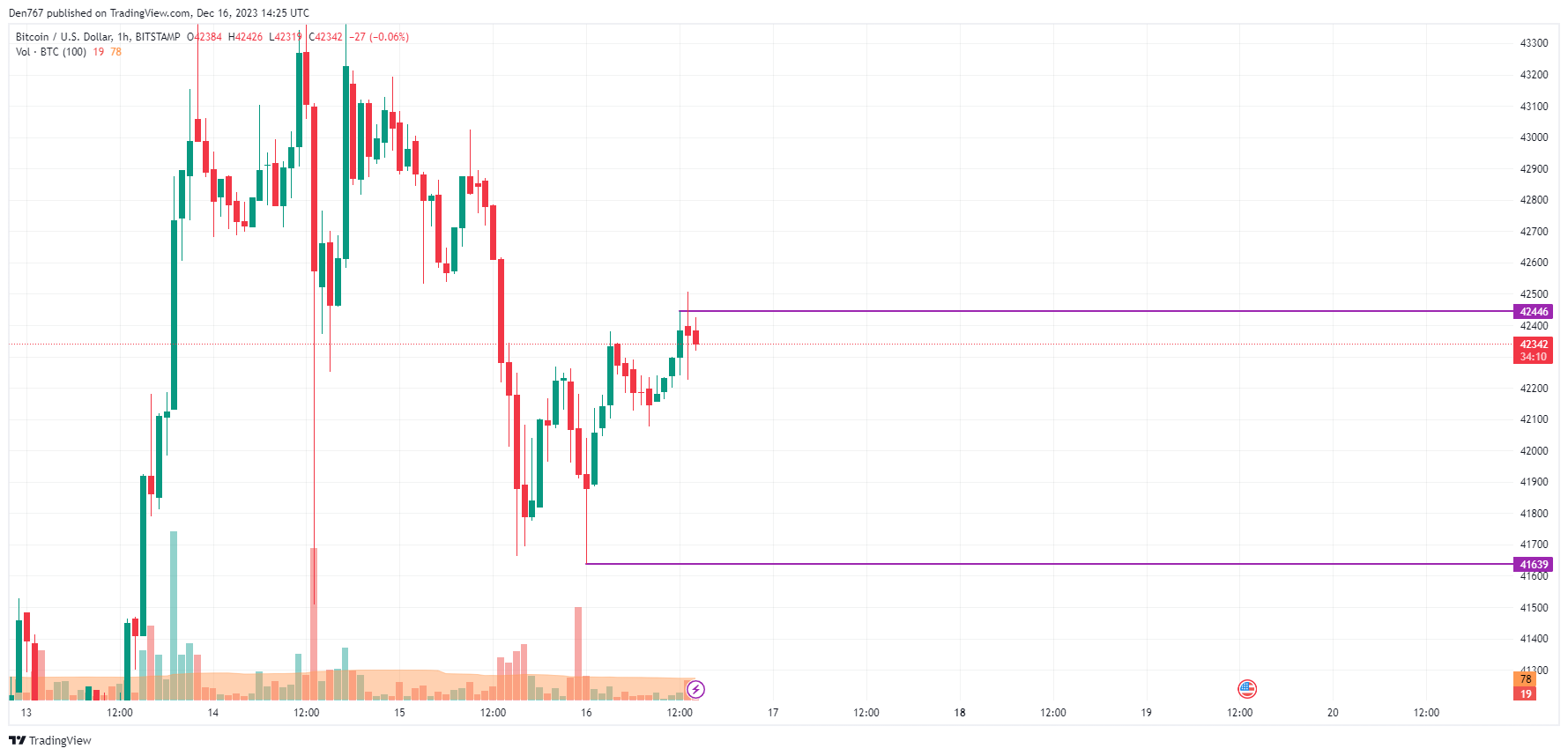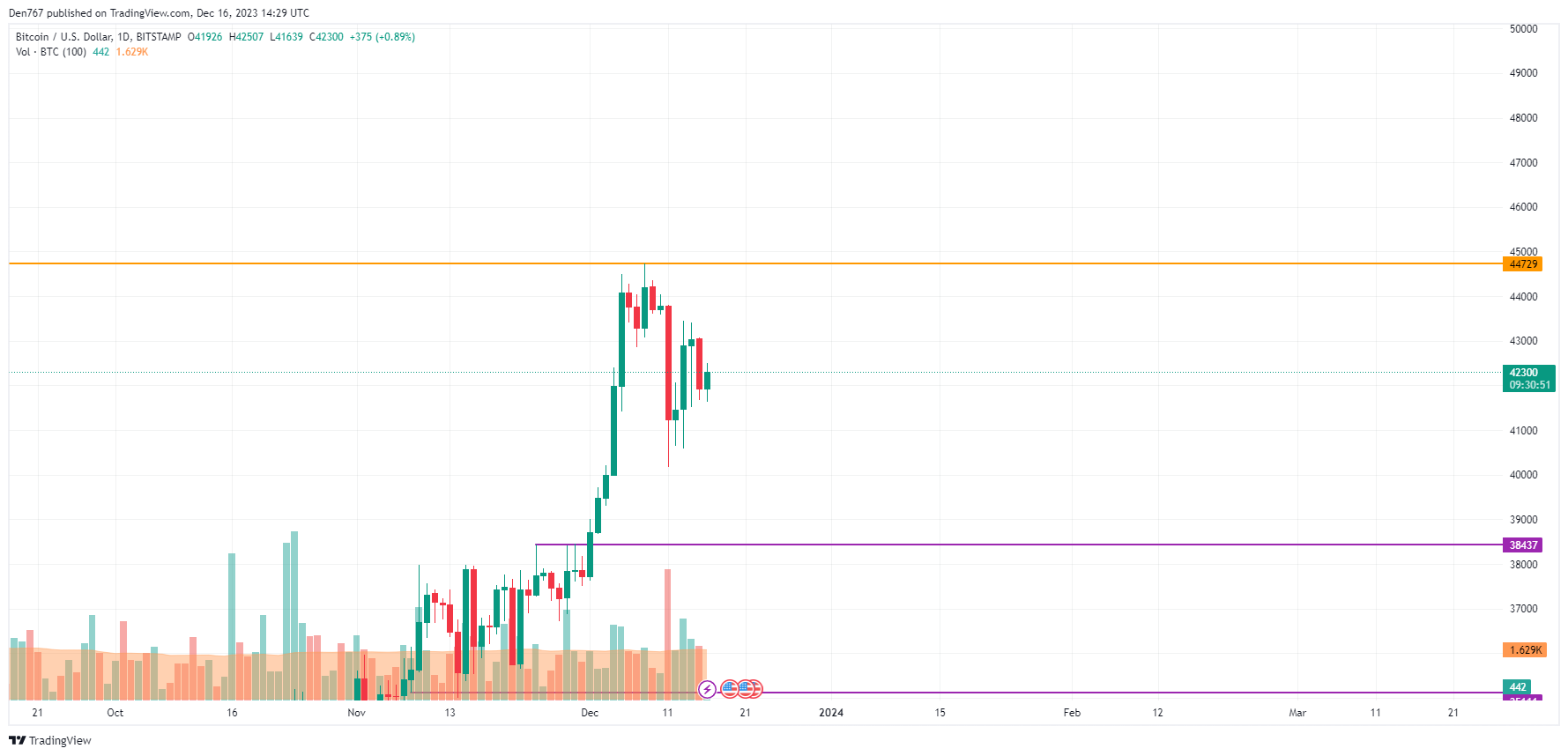 All in all, ongoing sideways trading between $42,000 and $43,000 is the more likely scenario for the next days.