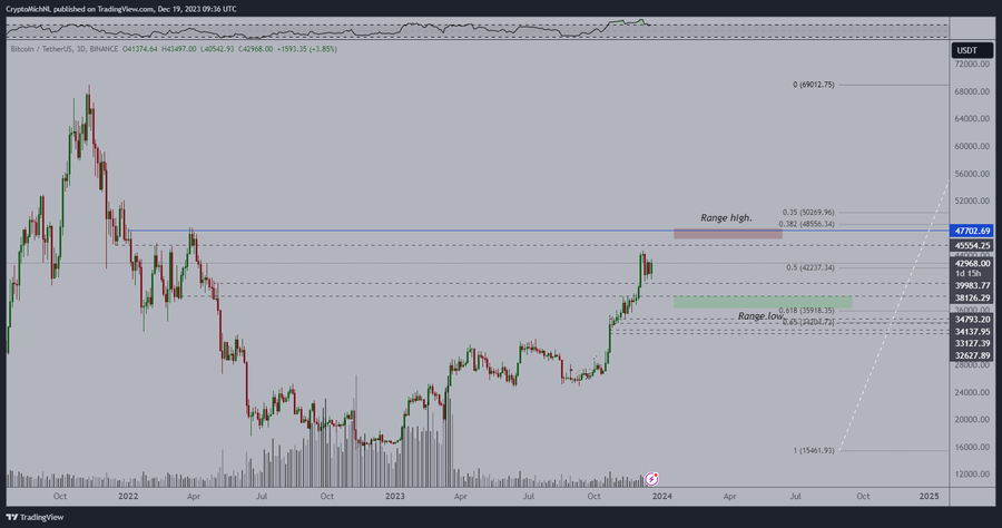 Despite not yet returning to the levels above $44,000 it briefly reached earlier this month, Bitcoin (BTC) seems to have resumed its bullish advance, and its next step could be to test the area right below $50,000 ahead of the approval of the first spot Bitcoin exchange-traded fund (ETF).