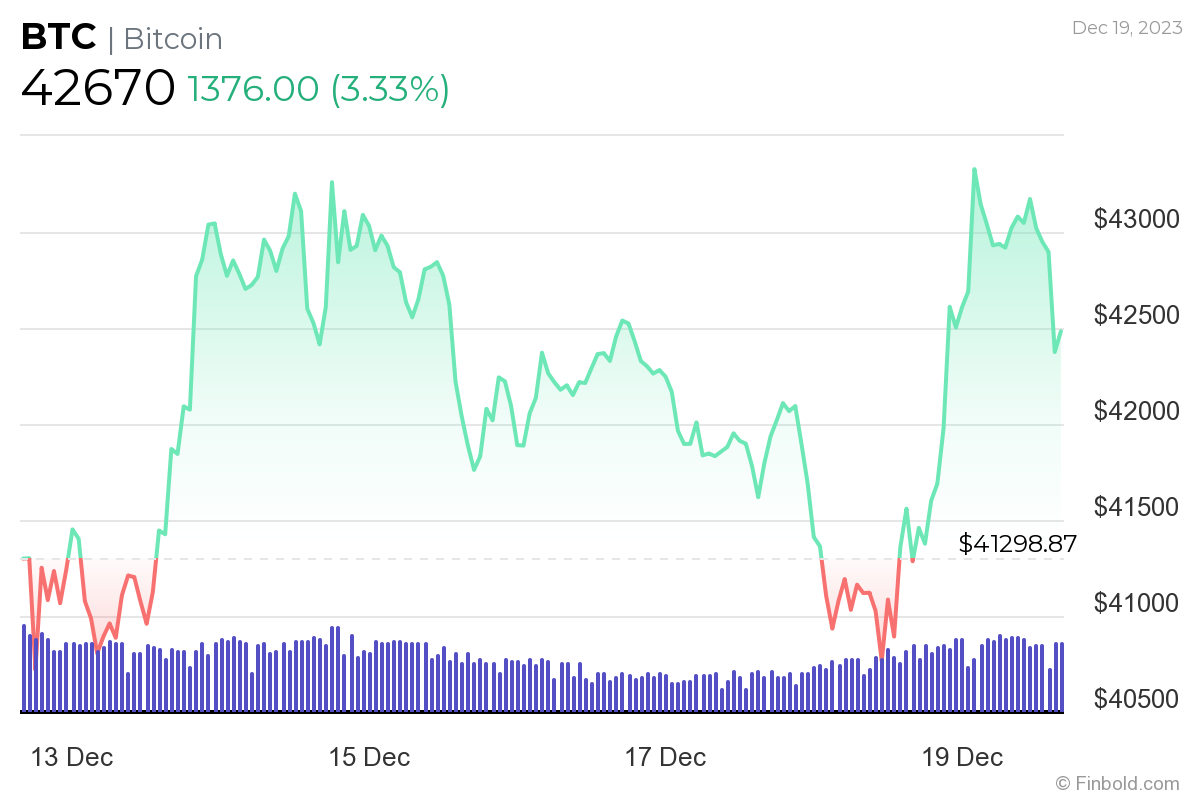 Meanwhile, Bitcoin was at press time changing hands at the price of $42,670, which represents an increase of 3.33% in the last 24 hours, in addition to advancing 2.90% across the previous seven days and gaining 17.05% on its monthly chart, according to the data on December 19.