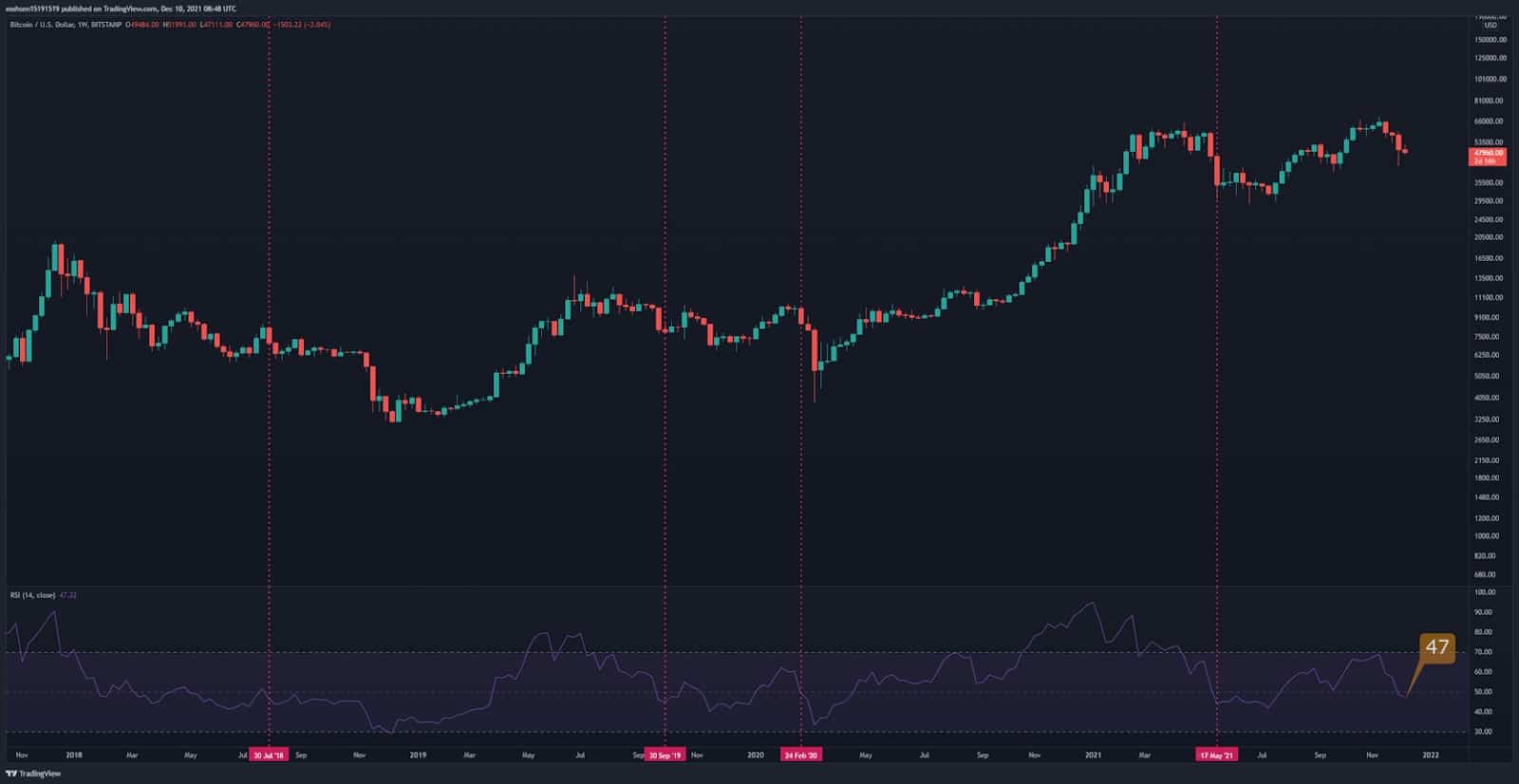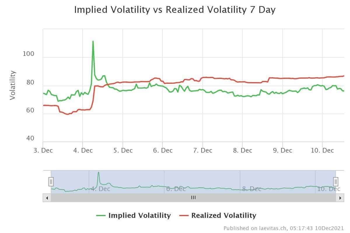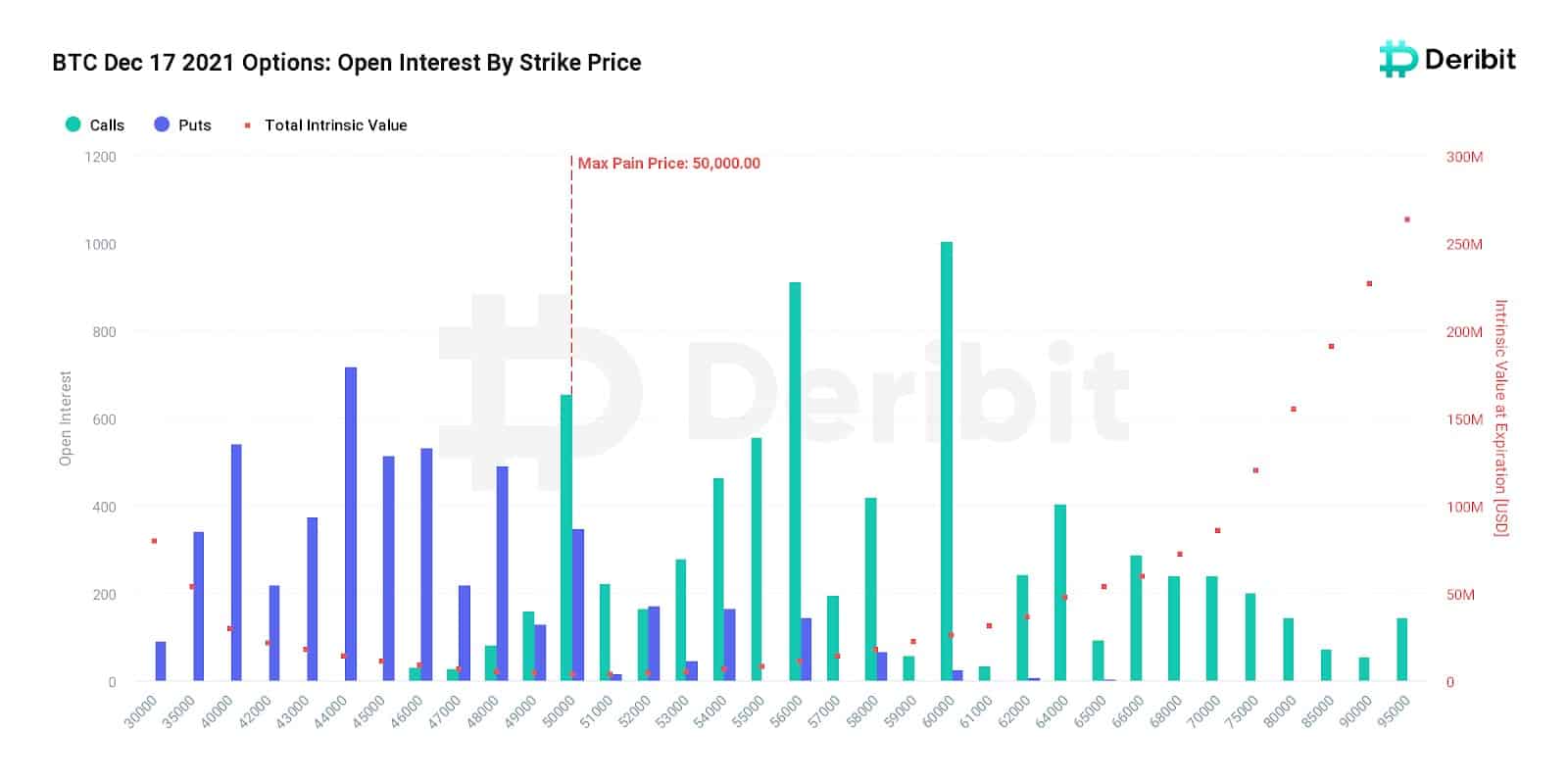 Bitcoin price is now sub $49,000, about 27% below the ATH ($69k). Options traders set different hedging strategies during the previous weeks to protect against the market downside. Next Friday, December 17th, about $630 million worth of bitcoin options contracts will expire in Deribit. The max pain scenario for this expiry is if the price is at $50K. Calls at 60k strike price have the highest open interest with 1005 contracts. Options traders have sold lots of calls for this strike. They seem to look at the 60k strike price as a resistance for now.