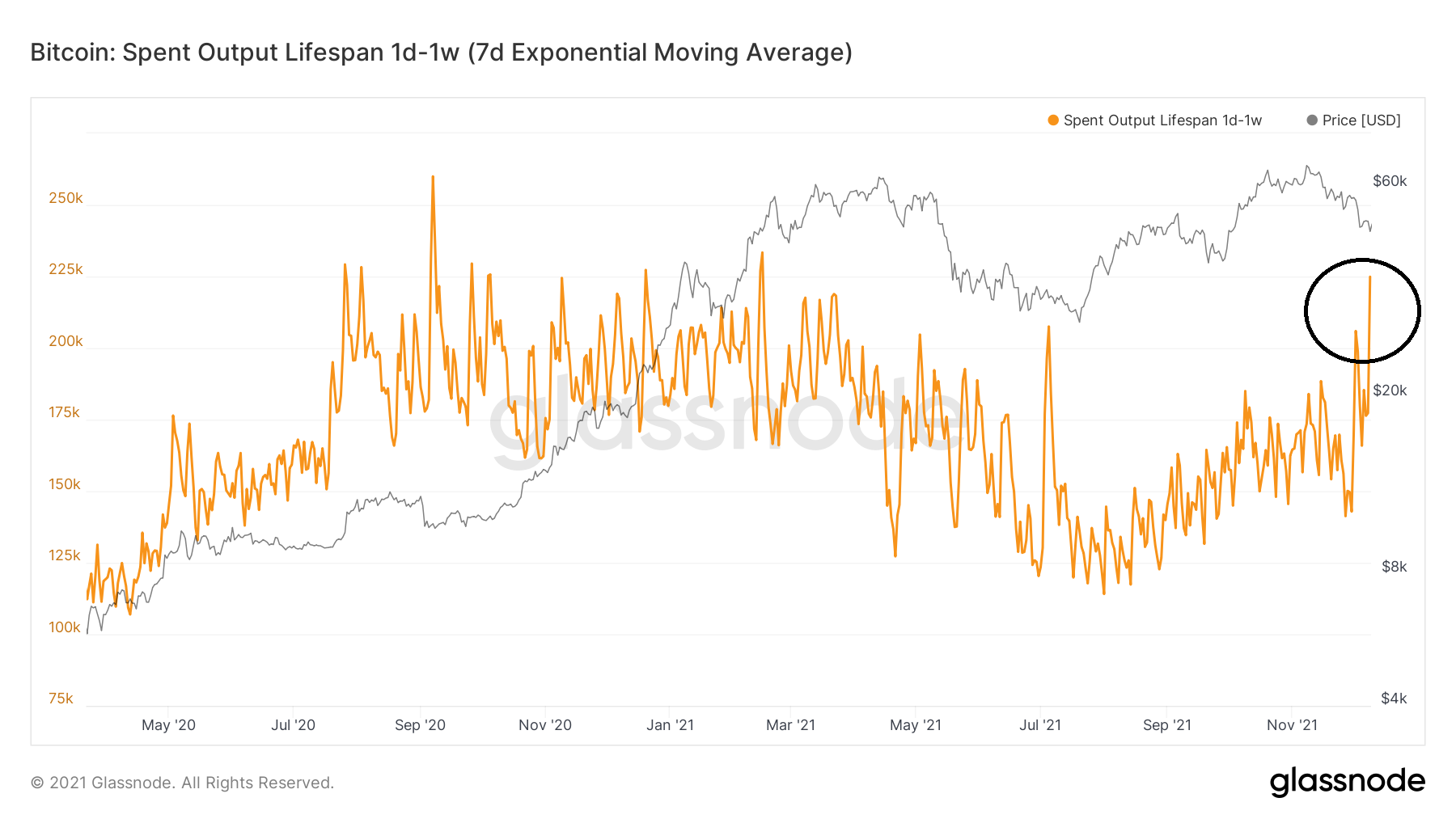 This is confirmed when looking at spent outputs between 1 day – 1 week, which spiked considerably on Dec 4.