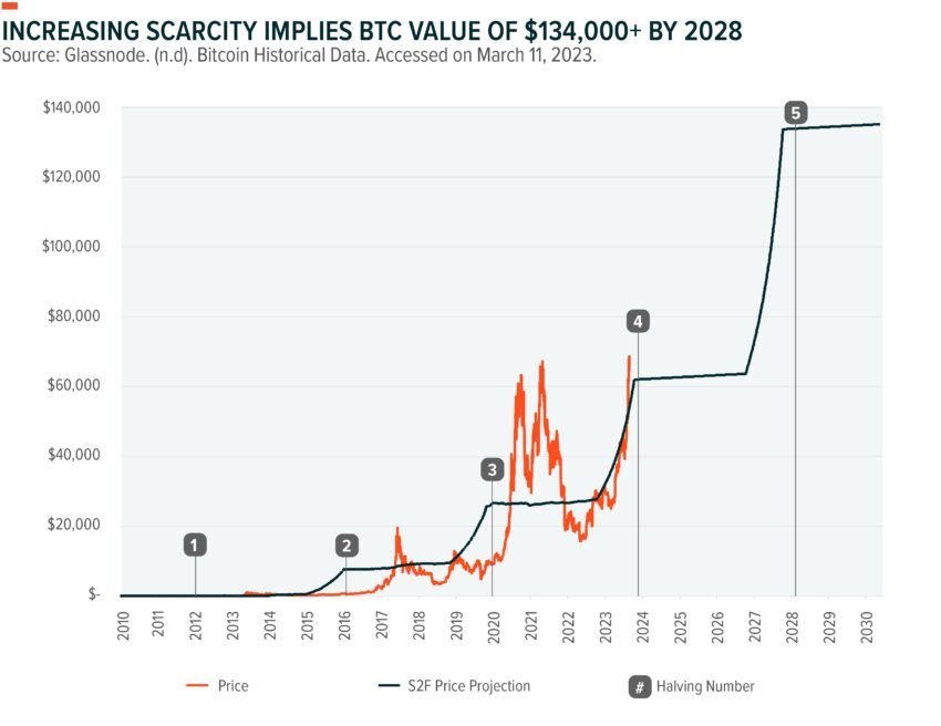 Although the stock-to-flow (S2F) model, typically applied to commodities like gold, has its flaws, it serves as one method for assessing Bitcoin’s value. This model has demonstrated a historical correlation with the price fluctuations of Bitcoin. As Bitcoin becomes increasingly scarce, experts project its value will climb from its current price.