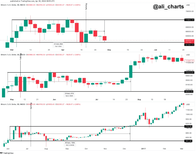 At the same time, crypto experts like Ali Martinez and Michaël van de Poppe see bright future for Bitcoin, with the former observing it had also “consolidated for an extended period around the last two halving events – 189 days in 2016 and 87 in 2020 – before the bull run resumed,” and so far it has consolidated for 60 days.
