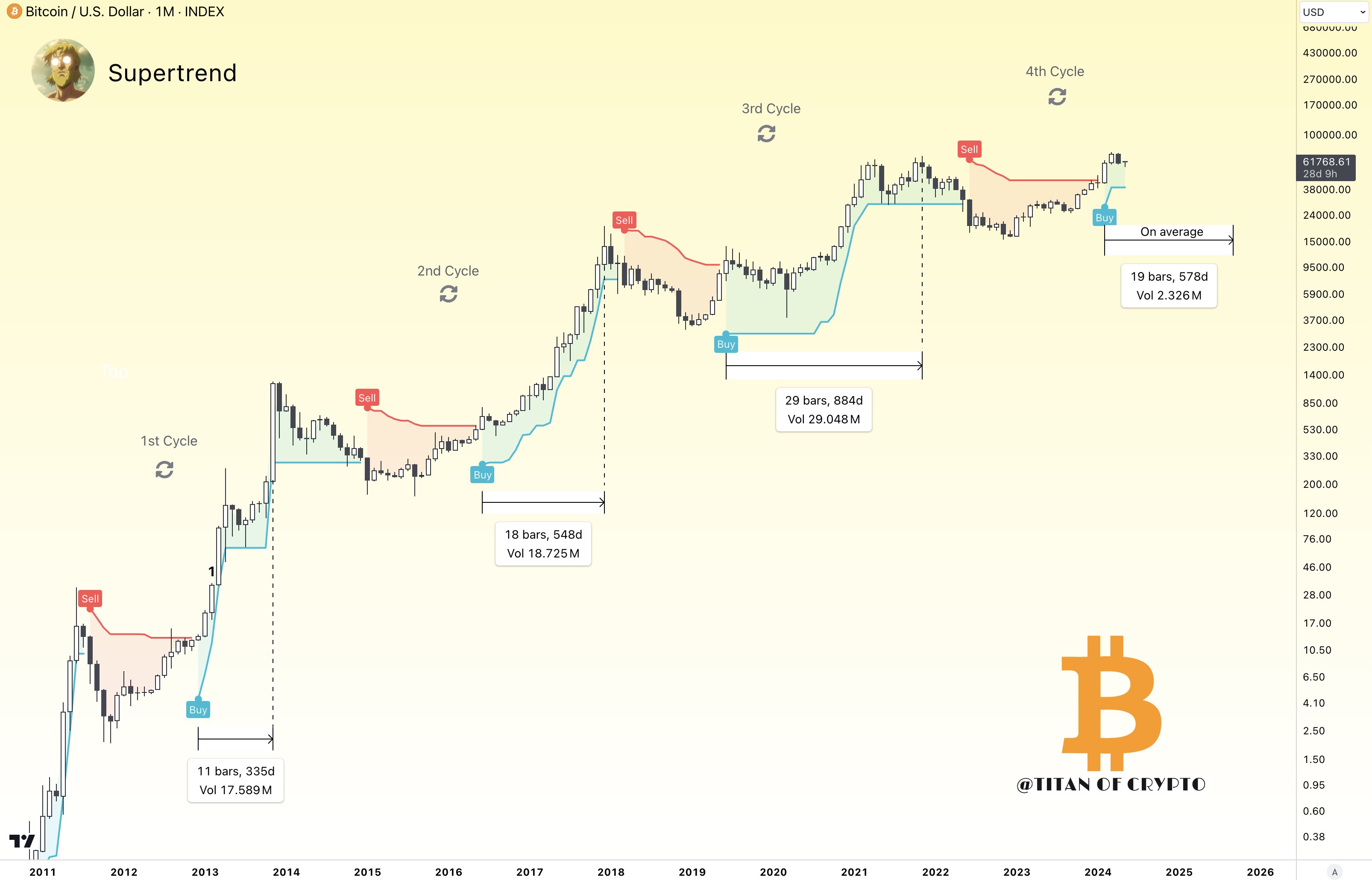 The buy signal, which occurred just three months ago, implies that Bitcoin may still have significant room for growth before reaching its cycle top. According to the analyst, historical data suggests that the average duration from the buy signal to the cycle top is approximately 19 months, indicating the potential for a sustained upward trend.