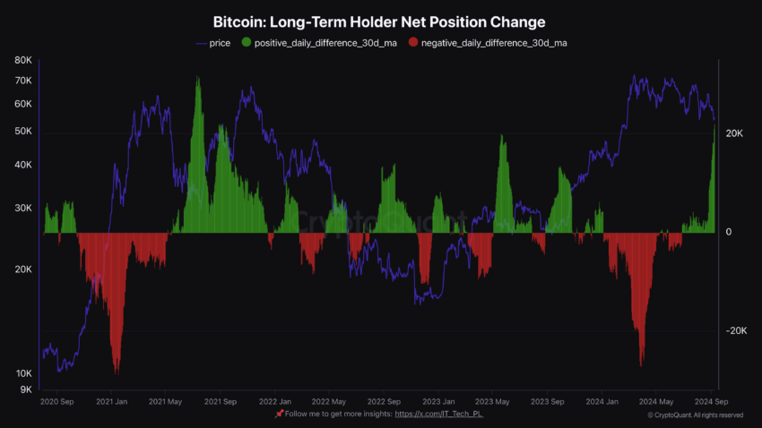 At the same time, long-term holders (LTH) are increasing their Bitcoin positions. Data reveals a net increase in LTH positions, historically a bullish signal. When long-term investors accumulate, it often indicates confidence in the cryptocurrency’s future growth potential.