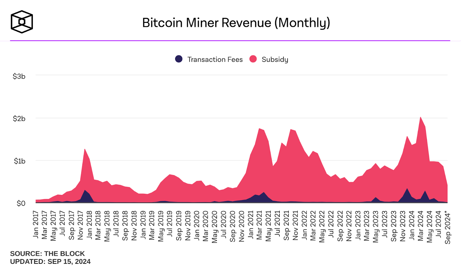 After having reached a peak in March 2024, also due to the increase in fees with the explosion of Ordinals, the revenues plummeted with the halving in April.