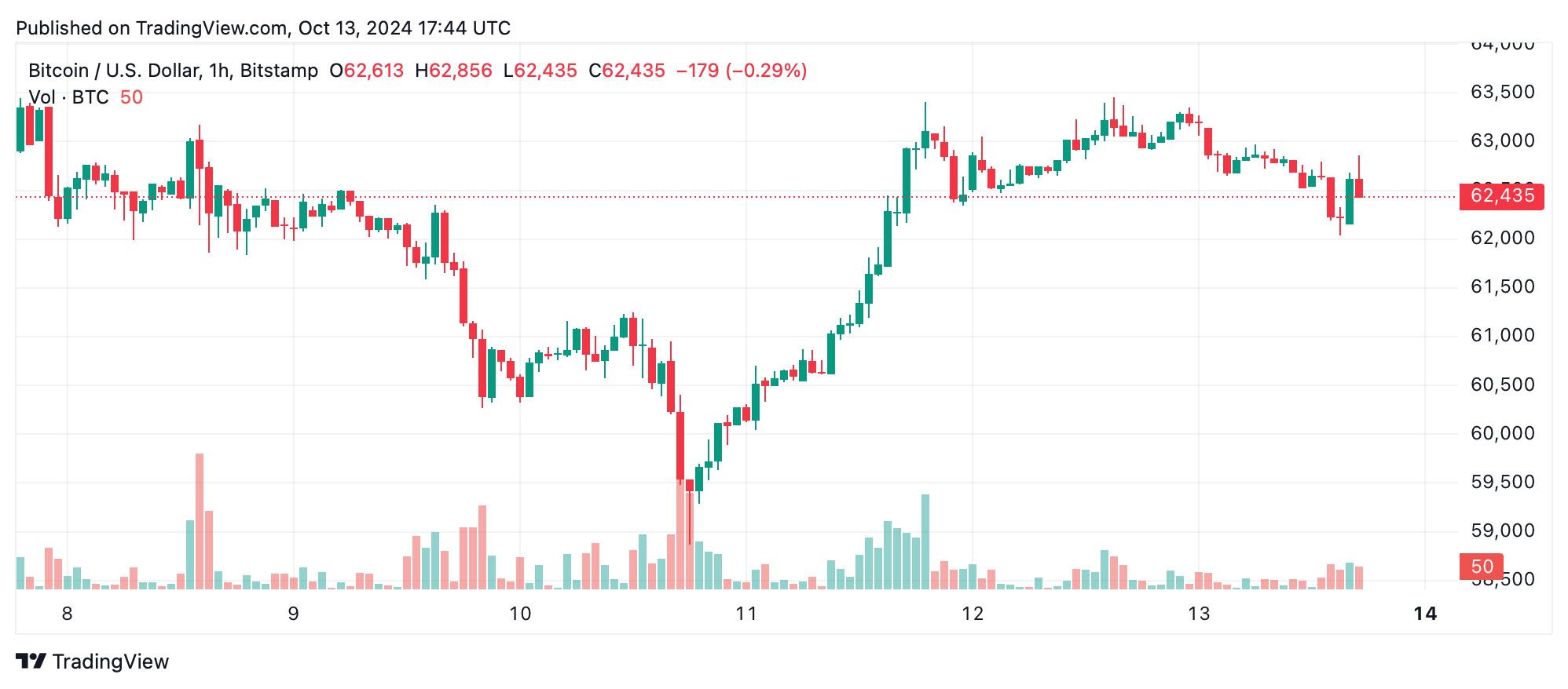 On the 1-hour chart, bitcoin’s (BTC) downward trajectory is clear, as the price dropped from a peak of $63,455 to recent lows near $62,039. The pattern of lower highs and lower lows signals that sellers have been in charge, even though brief bullish moves have appeared along the way. Despite these short-lived rallies, overall sentiment remains tilted toward the negative.