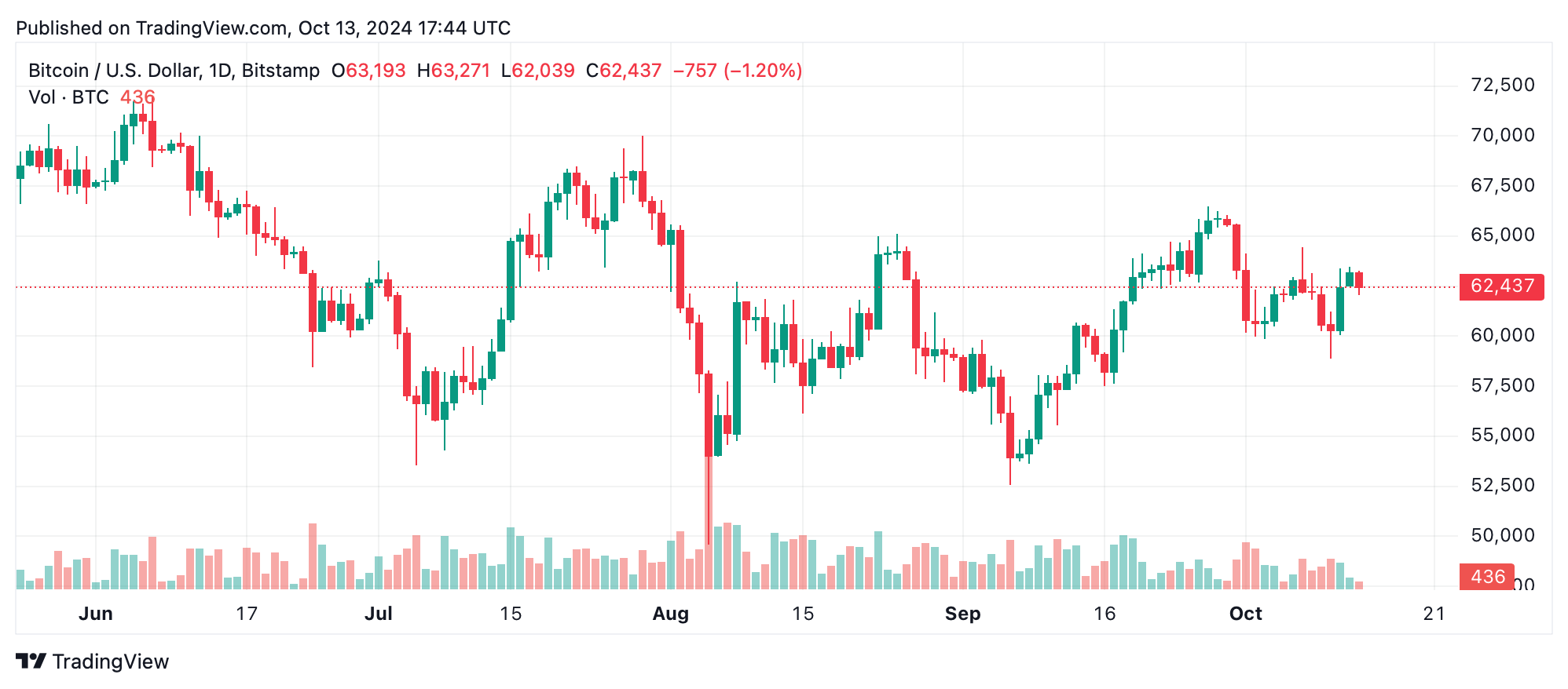Conversely, the moving average convergence divergence (MACD) remains negative, issuing a sell signal that points to continued bearish momentum in the near term. In addition, volume spikes during price drops suggest that sellers still dominate the market despite the mixed signals from oscillators. At press time, BTC is exchanging hands for $62,437 per coin.