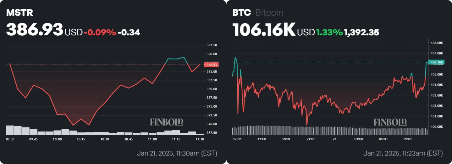 Meanwhile, MSTR is trading at $386.44, down 0.09% on the day, reflecting the broader market’s reaction to Bitcoin’s volatility and lingering concerns over the potential dilution of shareholder value.