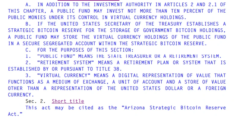 If this bill legalizes, Arizona would be the first US state to officially invest public funds in Bitcoin.