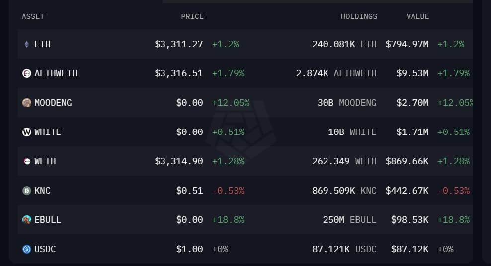 His stablecoin exposure, including USDC at $87,120, indicates some level of liquidity management, though it remains a minor fraction of his total holdings alongside other tokens.