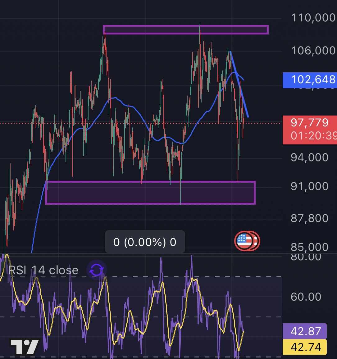 In the past few days, Bitcoin price has been forming a falling trend, characterized by lower lows and lower highs. As a result, Bitcoin price is likely to dip below the support level of around $96k again, with a midterm target of about $91k.