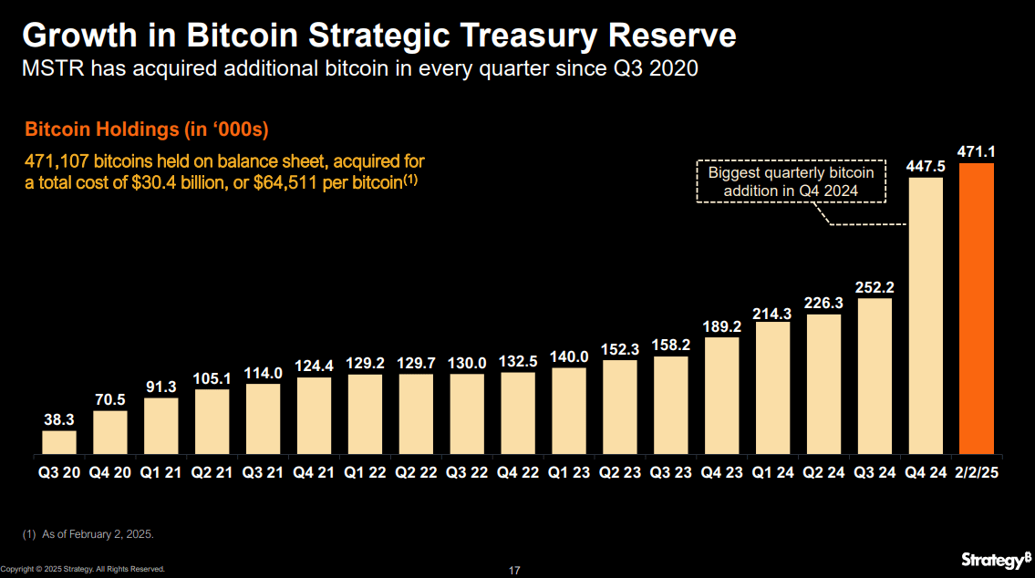 Strategy’s Bitcoin treasury reserve growth (Source: Strategy)