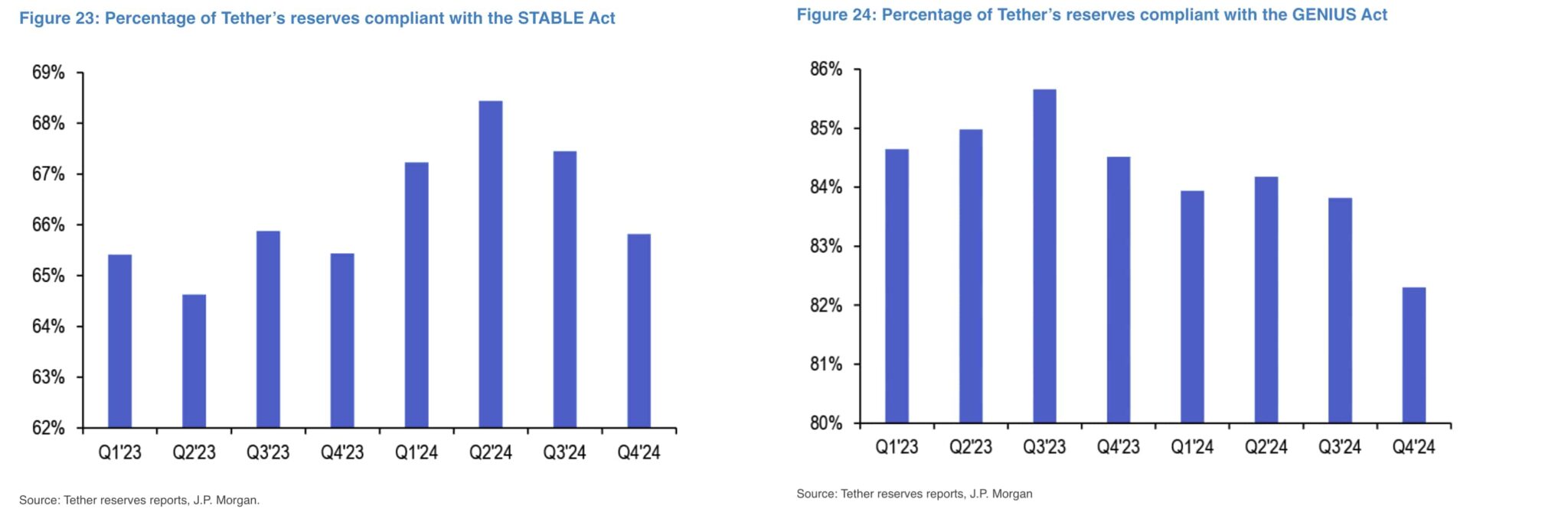 As The Block reported this morning, JPMorgan analysts are looking to Tether’s reserves and the recently introduced U.S. bills, regulating stablecoins in the country. According to estimations, only 66% and 83% of the issuer’s reserves comply to each proposed bill at its current state.