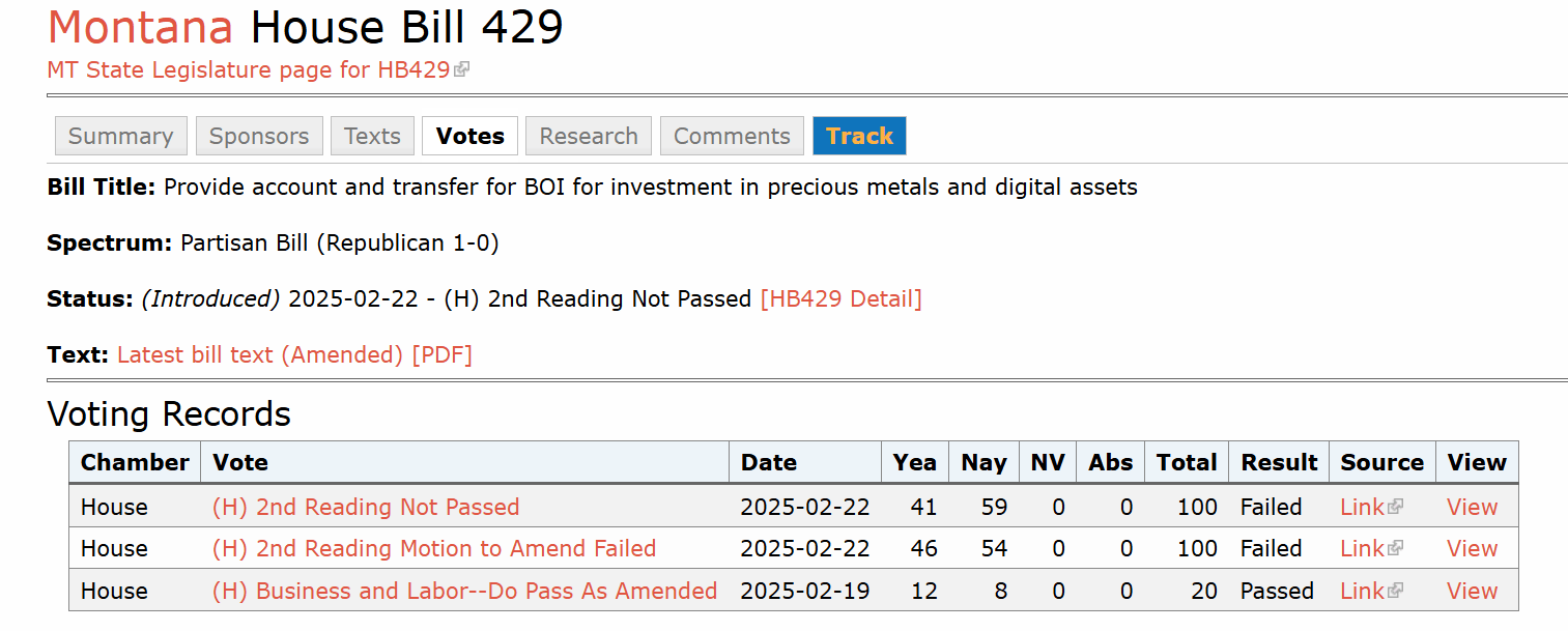 Bill sponsor Curtis Schomer warned that rejecting the bill will be the greater risk, as Montana’s investment board would continue to lose purchasing power by relying on traditional assets like bonds. Representative Steve Fitzpatrick added that the state had substantial funds sitting idle, which could be better utilized by investing in digital assets and precious metals to generate returns that could ultimately reduce taxes and provide fiscal relief.