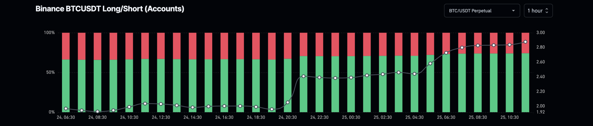 With the massive crash in Bitcoin, optimistic traders have initiated a buy-the-dip frenzy over the past 24 hours. On Binance, the biggest centralized crypto exchange, the long-to-short ratio based on accounts has risen to an astronomical figure of 2.88.