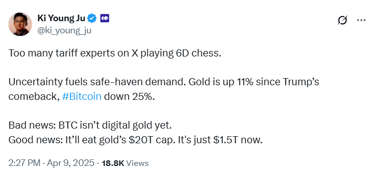Analysts suggest that a similar decoupling could occur again if Bitcoin reasserts its role as a hedge against economic turbulence. While CryptoQuant CEO Ki Young Ju recently noted that Bitcoin is not yet digital gold, he suggested it could assume this position in the future.