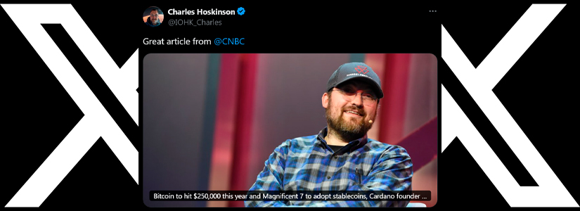 - $250K Prediction: Charles Hoskinson forecasts Bitcoin reaching $250,000 by 2025, driven by institutional adoption, regulatory clarity, and global market shifts.