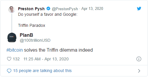 Prominent analyst and inventor of the stock-to-flow model, PlanB, stated in the comment thread that Bitcoin can indeed solve the Triffin dilemma.