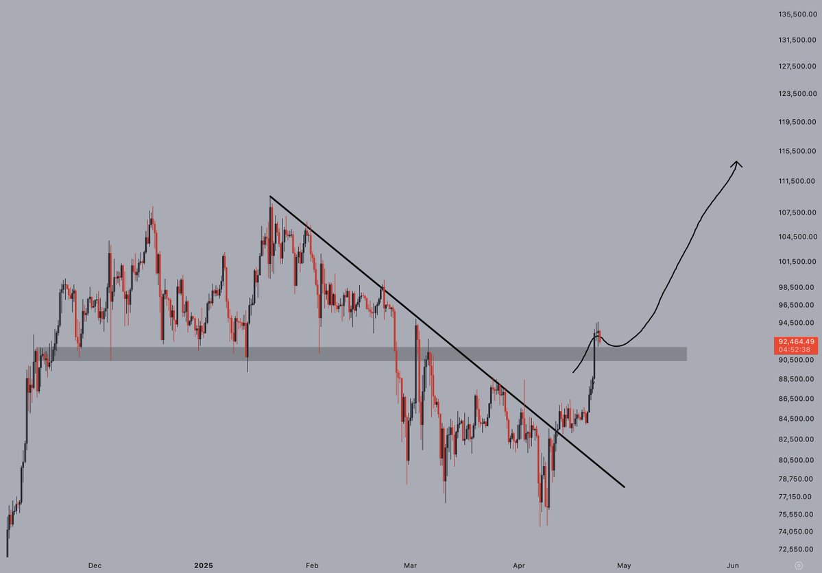 Bitcoin is now trading at critical levels after a sharp market impulse shifted sentiment nearly overnight. For months, BTC has been stuck in a downtrend that began in January, frustrating bulls and leading to calls for deeper corrections. But with the recent surge pushing BTC above $90,000, many analysts believe that this trend may have finally reversed.