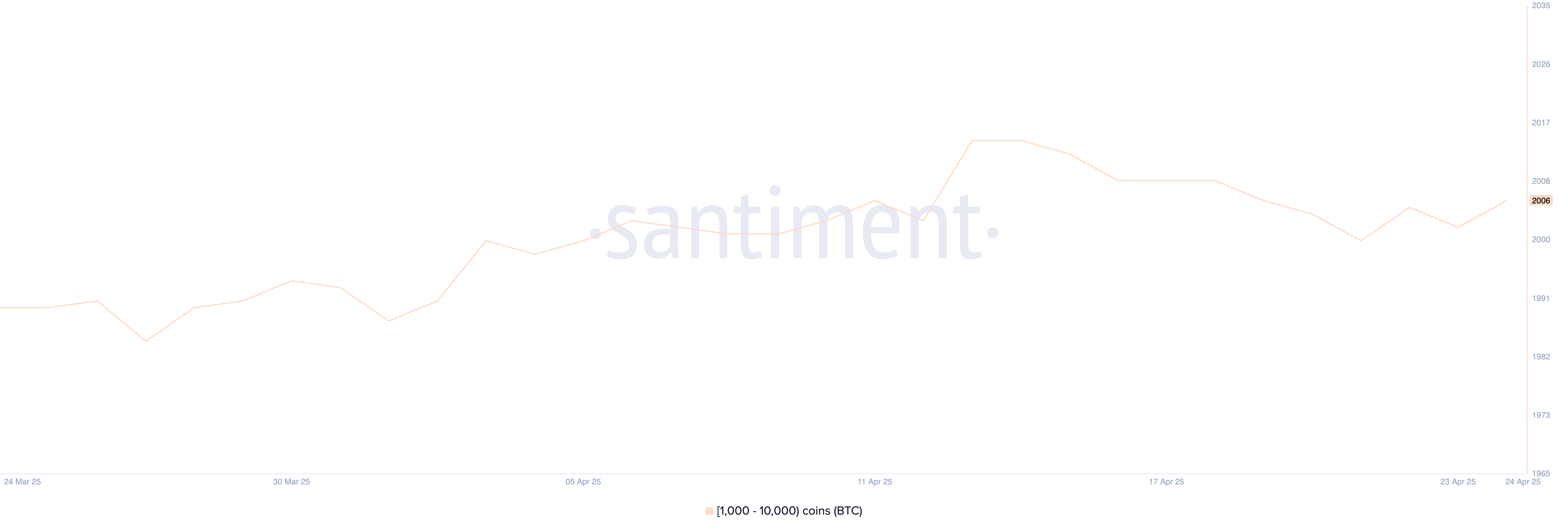 There are 2,006 BTC whale addresses, slightly higher than the 2,000 recorded on April 21. The count briefly rose to 2,005 on April 22 before dipping to 2,002 the next day, and now it’s back above that level.