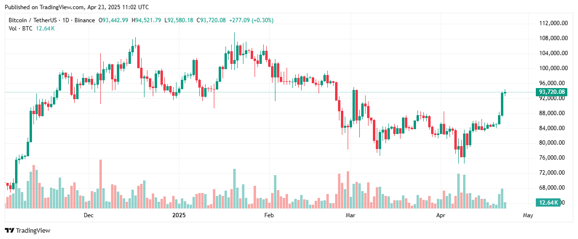 Bitcoin price rose to $94,270, smashing the $88,000 resistance on the daily chart. Ending weeks of flat trading, the rally is backed by high volume, macro tailwinds, and strong technicals.