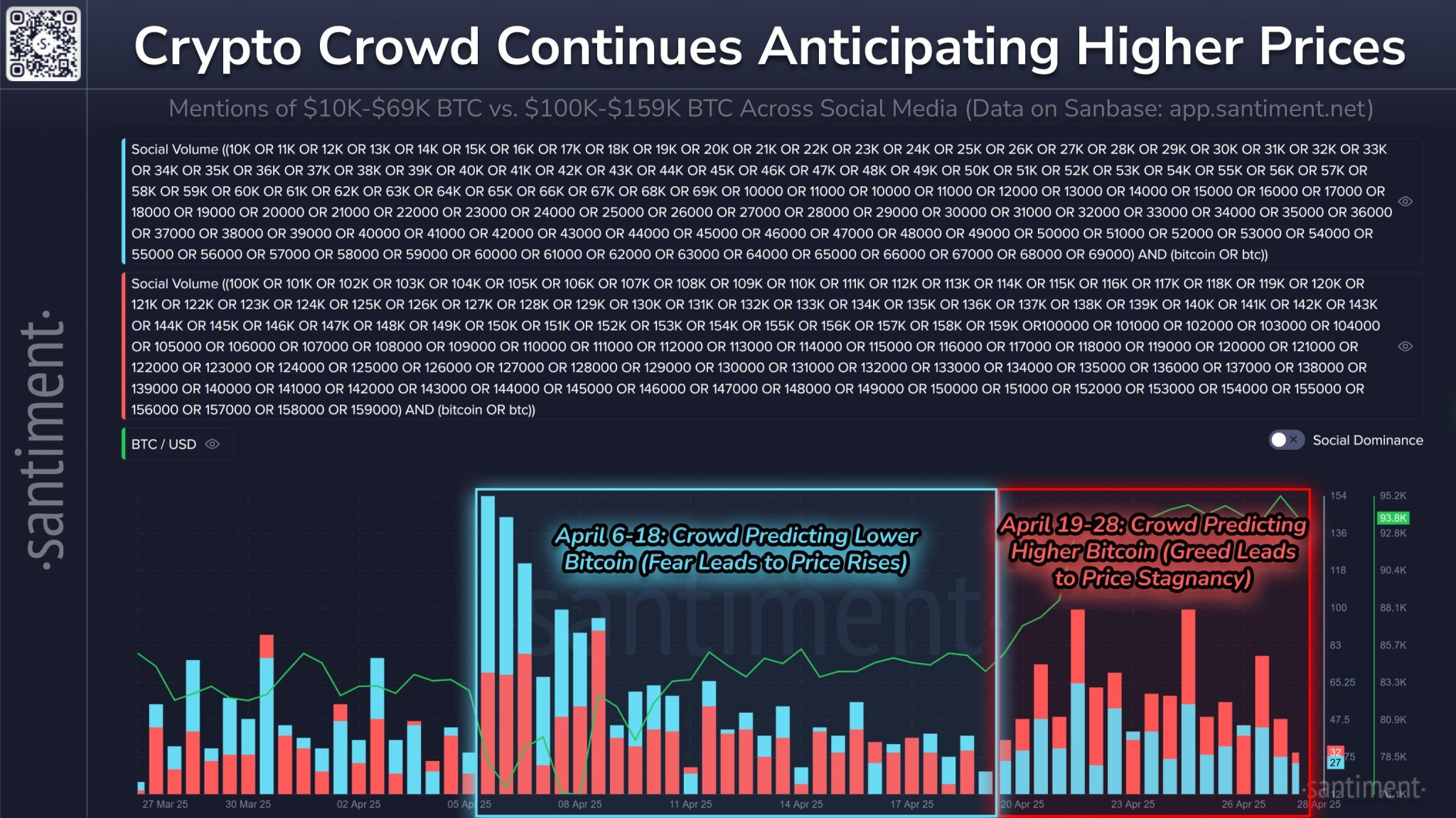 According to the data shared by the company, while a significant part of the cryptocurrency community predicted lower prices for Bitcoin on social media platforms between April 6-18, this situation was reversed in the data between April 19-28.