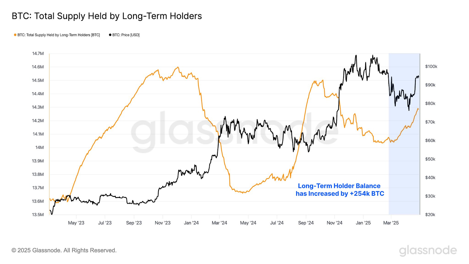 As Gold (XAU) price signals a potential market reversal after an impressive rally since the first quarter of 2024, capital rotation to Bitcoin (BTC) has accelerated. According to market data from Glassnode, Long Term Holders added more than 254k BTCs in the past three months to currently hold about 14.3 million coins.