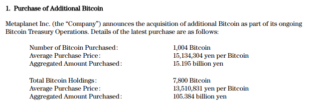 *Metaplanet Acquires Additional 1,004 $BTC* pic.twitter.com/r86rLc7ngh