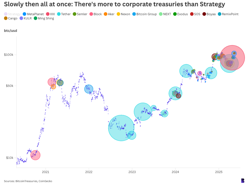 Some of the data on BitcoinTreasuries may be a little screwy (does Block. one really still have 164,000 BTC, worth $16.8 billion?), but that’s besides the point.