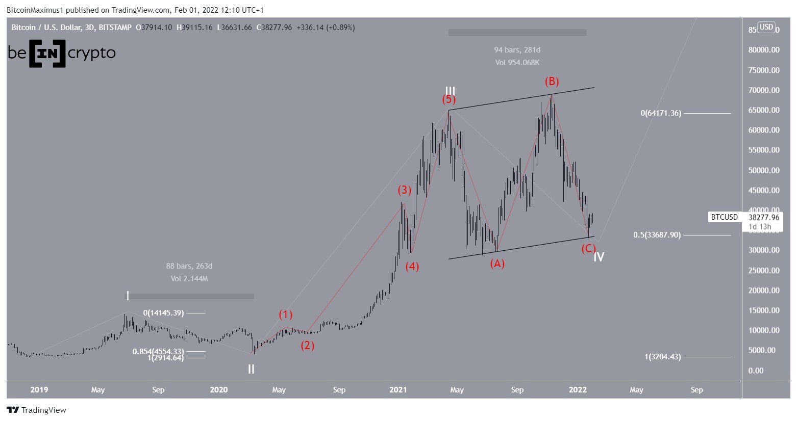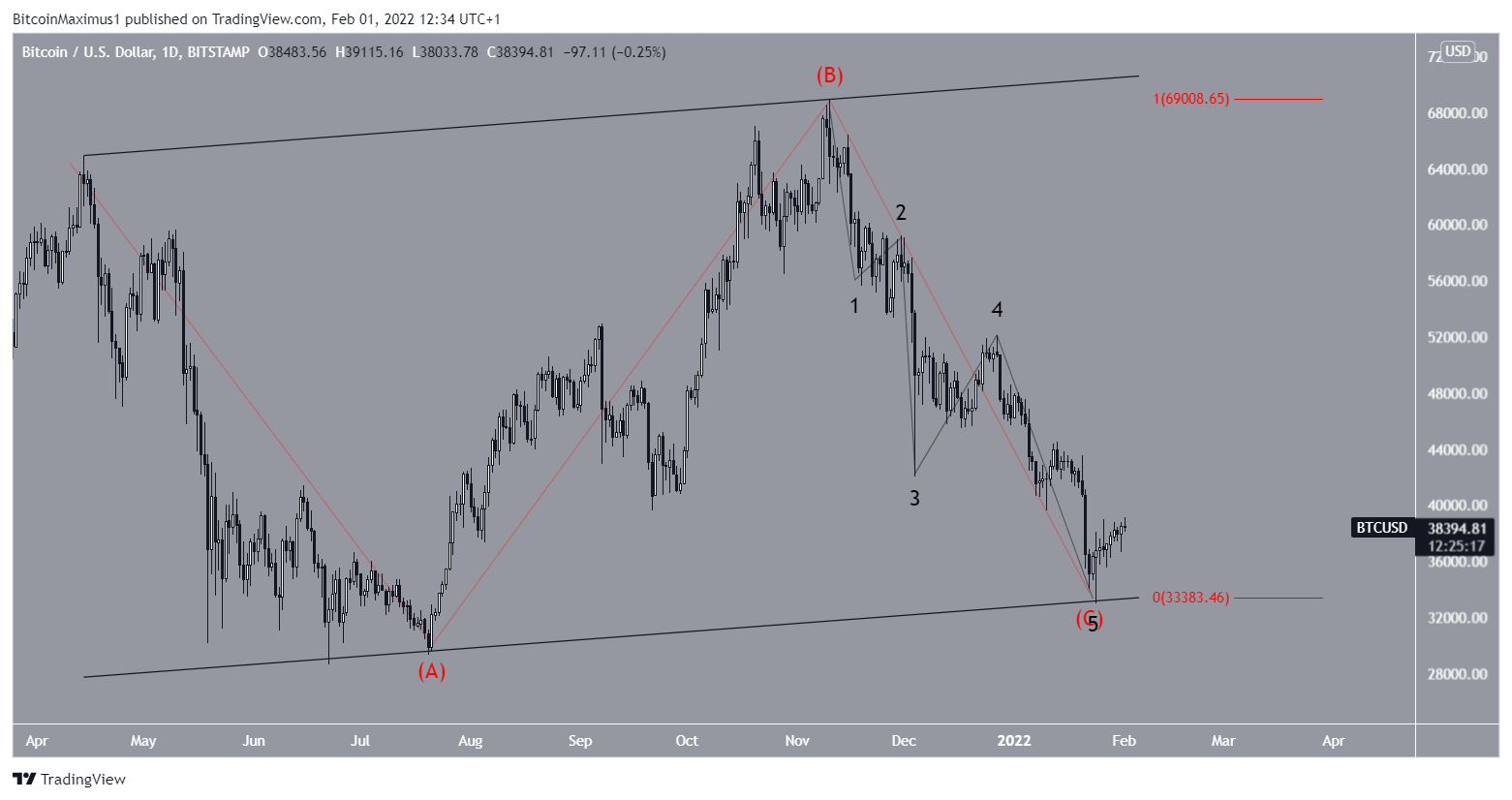 The final and most likely possibility suggests that BTC has completed its long-term wave four inside the current ascending parallel channel. In it, waves A:C have had an exactly 1:1 ratio, which is the most common one in such corrections.