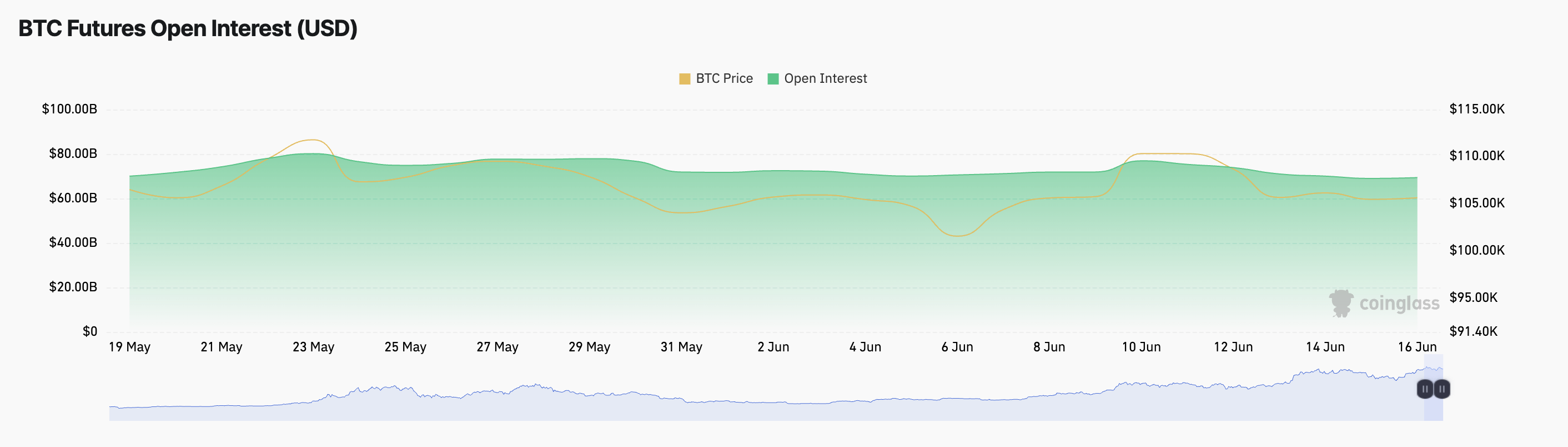 However, the coin’s steadily declining futures open interest suggests traders remain cautious, seeking safer ground. Per Coinglass, this stands at $69.39 billion, plunging almost 10% since June 10.