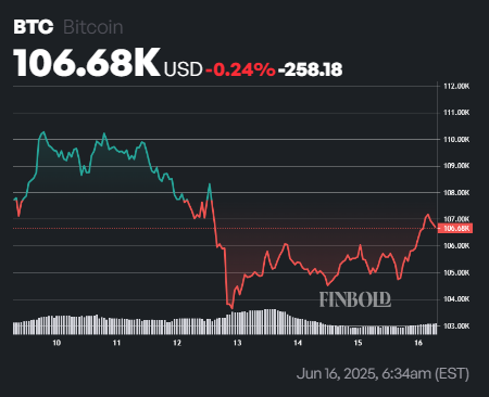 As of press time, the leading digital currency was trading at $106,679, up 1.5% in the past 24 hours, although down nearly 3% over the past week.