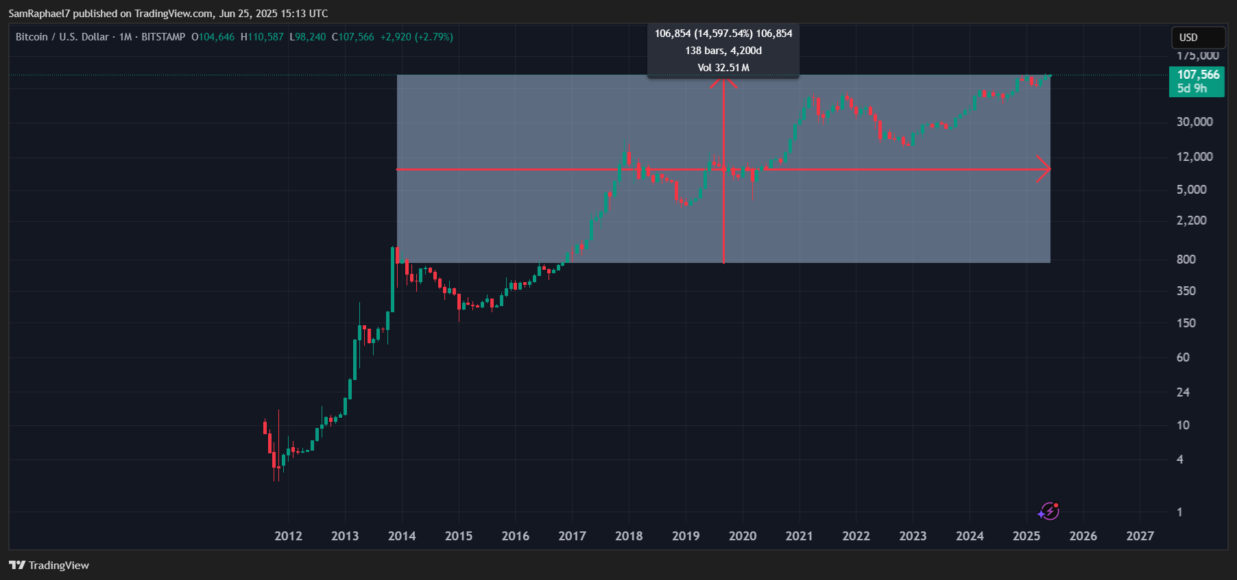 Now, as the city heads toward its next election in November 2025, Bitcoin has passed the $106,000 mark. Particularly, within the period that New York rotated through Bloomberg to now Adams, Bitcoin has surged 14,597%, as highlighted in the chart.