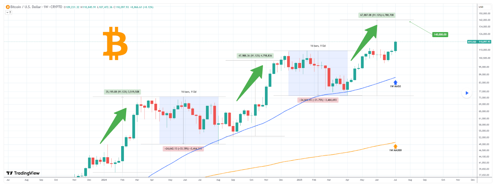 Bitcoin (BTC) has skyrocketed past the $118,000 record high mark, and analysts are predicting the asset is likely to reach $140,000 soon.
