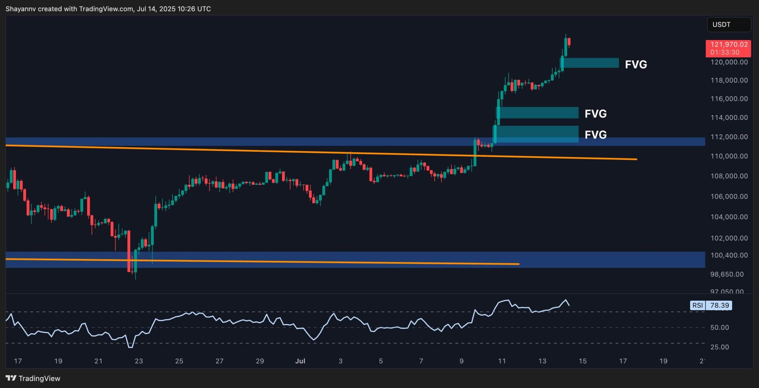 Moreover, if the price begins to range around the 121K–122K area, it would allow RSI to cool off and provide fresh momentum for the next breakout, without experiencing much correction.