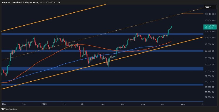 Bitcoin has officially entered price discovery once again, trading just below $122,000 at the time of writing. After months of consolidation and multiple failed breakout attempts, the bulls have finally regained full control.