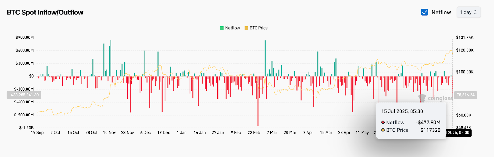 | Spot Netflow (July 15) | -$477.9M (Negative Liquidity) |