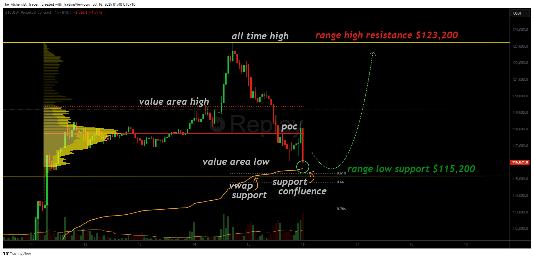- Range Support at $115,200: This is the key high time frame support to maintain bullish structure and keep the range intact.
