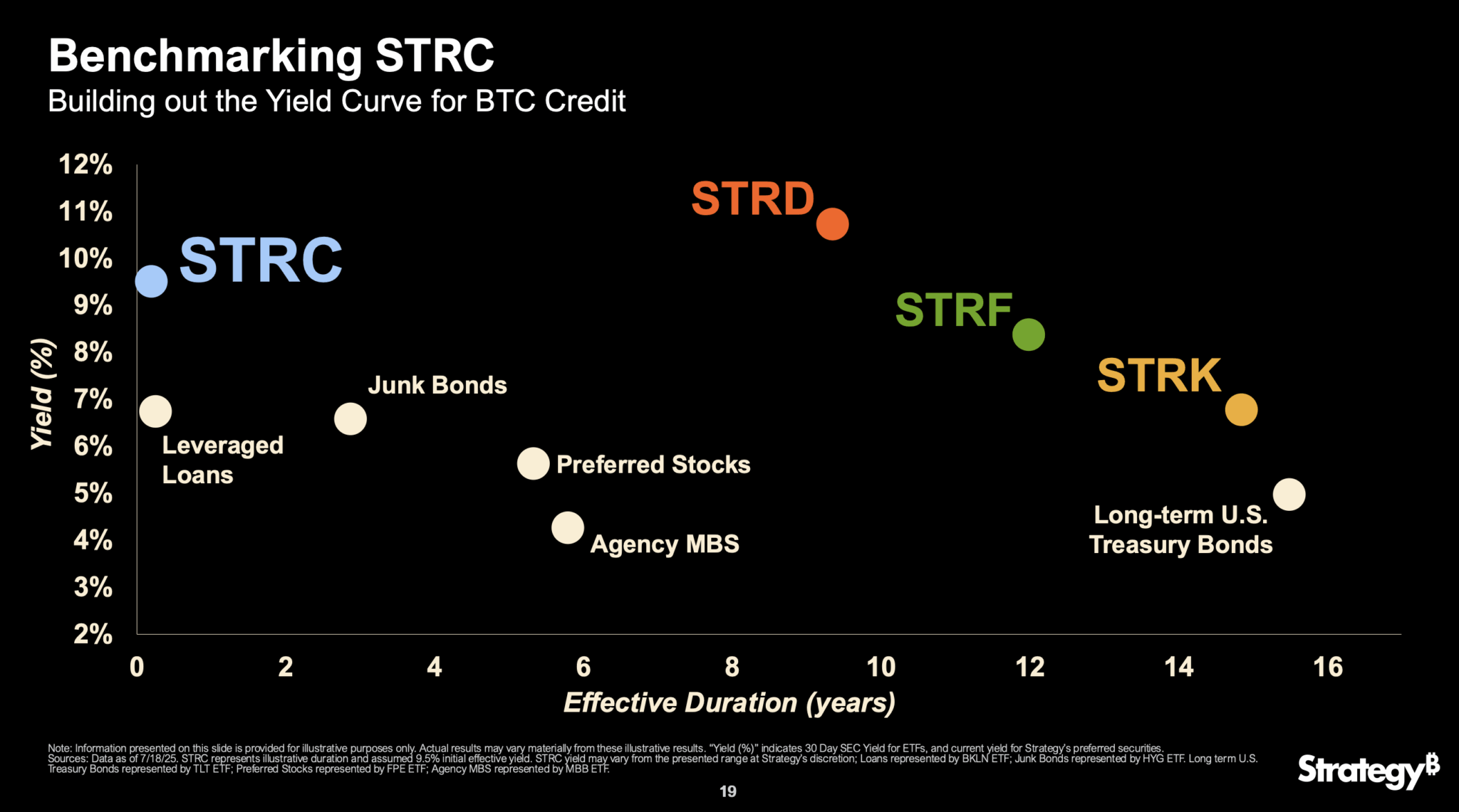 Indeed, according to a diagram published yesterday alongside the STRC IPO announcement, the supposed BTC credit yield that MicroStrategy is building resembles the yield curve of these massive instruments plus a slight premium due to MicroStrategy’s idiosyncratic risks.