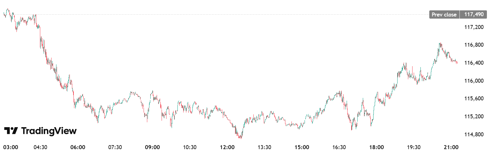 At the time of writing, Bitcoin is trading below $116,406, according to Binance (BTC/USDT pair via TradingView).