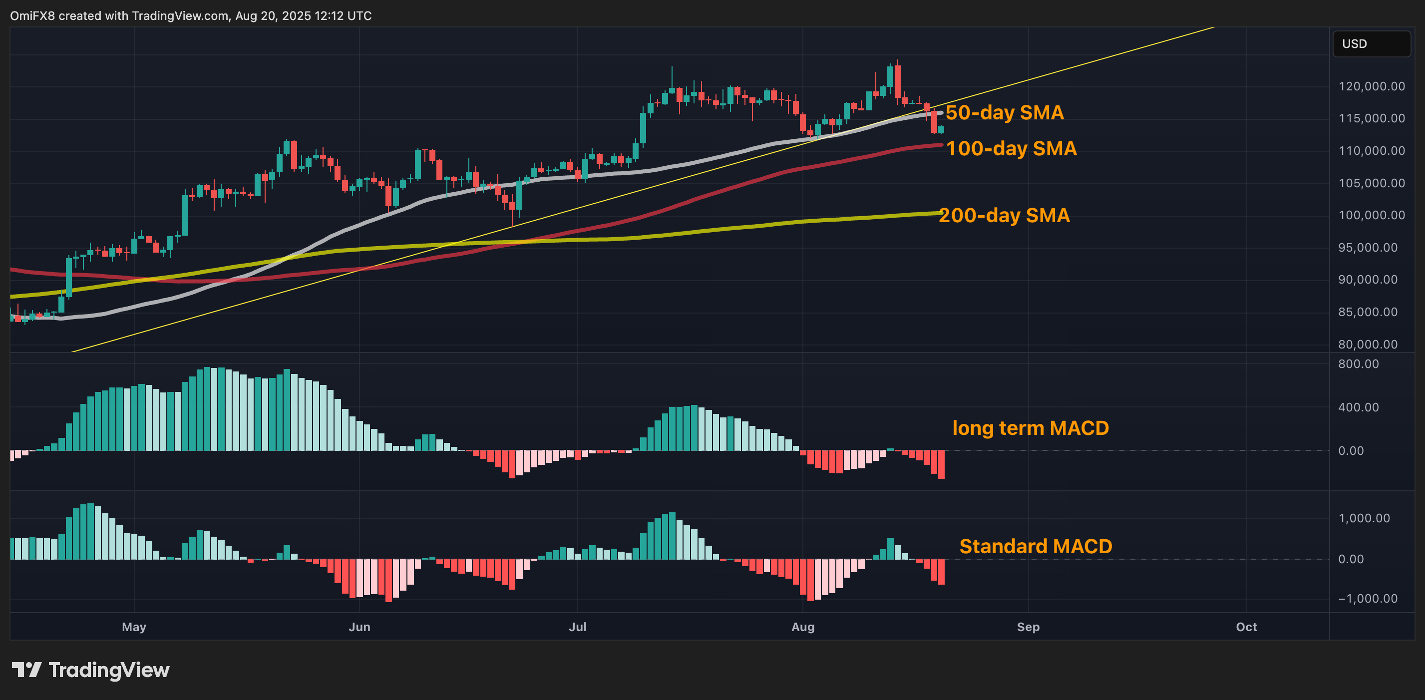 A convincing move above the 50-day SMA at $116,033 would negate the bearish outlook.