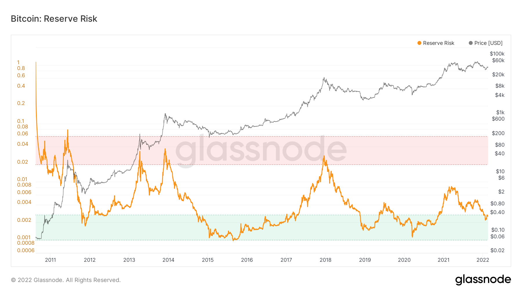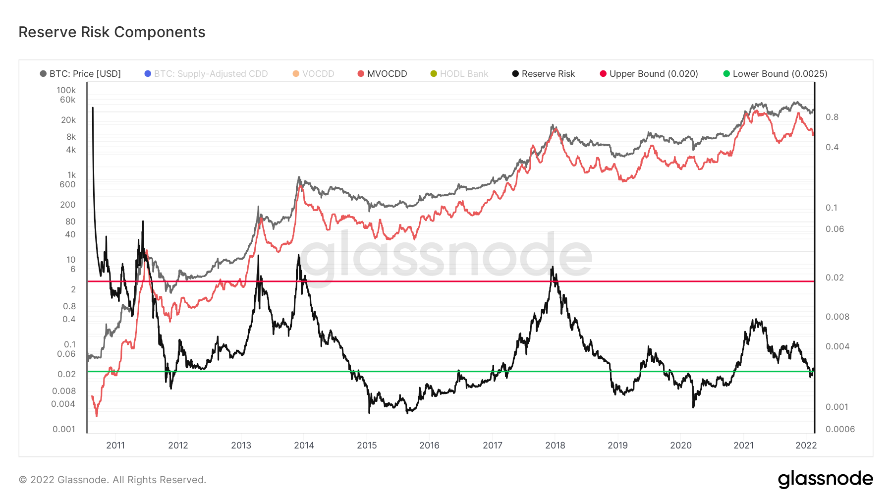 On Jan 24, Bitcoin reserve risk reached a low of 0.0022 — the lowest value since October 2020.
